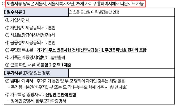 2. 현재 근로중인 서울 거주자 또는 공고일 이전 1년간 (2022.5.22 ~ 2023.5.21) 3개월 이상 근로 이력이 있는자(근로 종류는 무관하지만 증빙서류 제출이 가능해야합니다)